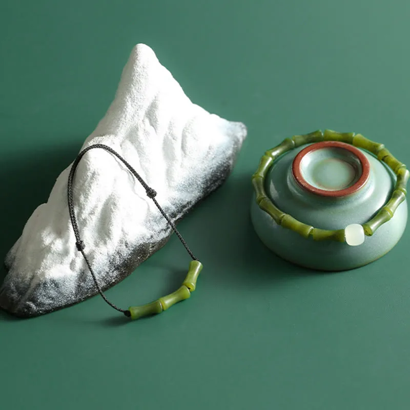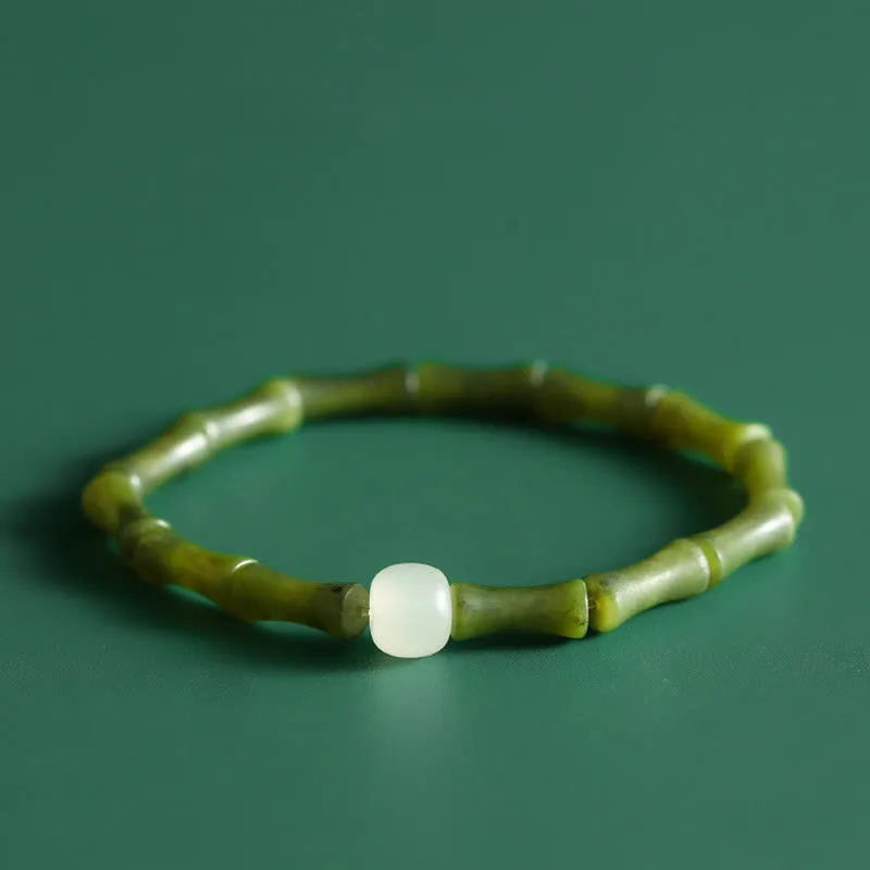 Mythstone Green Bamboo Jade Pattern Luck Abundance Bracelet