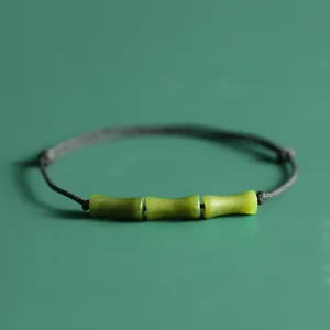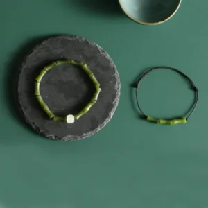 Green Bamboo Jade Elastic Bracelet(Wrist Circumference 14-15cm), Green Bamboo Jade Rope Bracelet(Wrist Circumference 14-15cm)