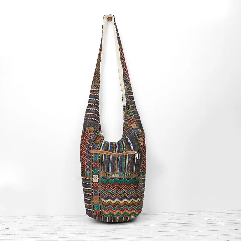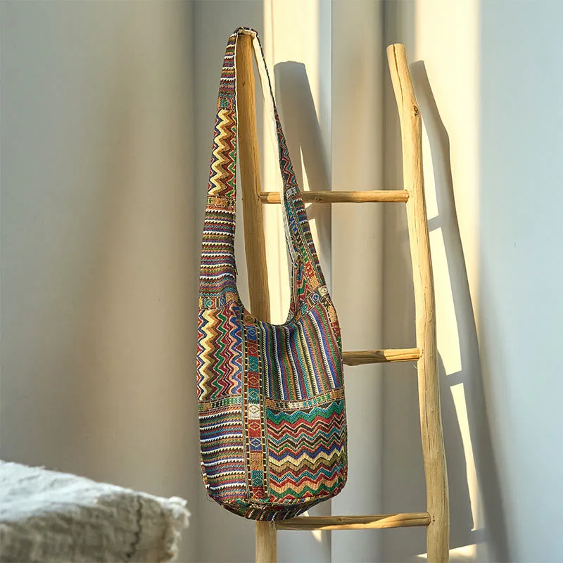 Waves Pattern Cotton Crossbody bag evokes a sense of calm and fluidity. The flowing green and brown waves symbolize the ebb and flow of life. reminding us to embrace change and find balance. Crafted from soft cotton. this bag can well reflect a connection to nature’s rhythms. This bag encourages a mindful and grounded approach to life’s journey. which makes you well planed and peaceful.