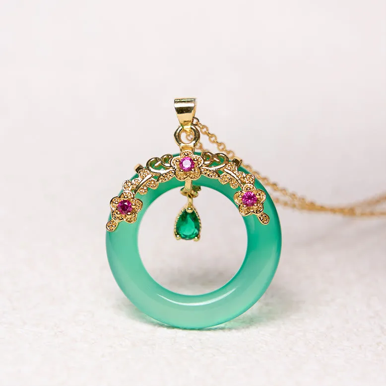 Mythstone Green Chalcedony Peace Buckle Design Strength Necklace Pendant