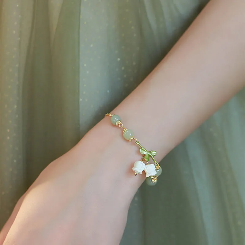 Elevate your prosperity with our Mythstone Green Jade Bead Lily of the Valley Prosperity Chain Bracelet. The soothing energy of green jade enhances luck and abundance. making it an ideal accessory for business and financial endeavors. Let the elegance of this bracelet inspire confidence and success in your financial journey.