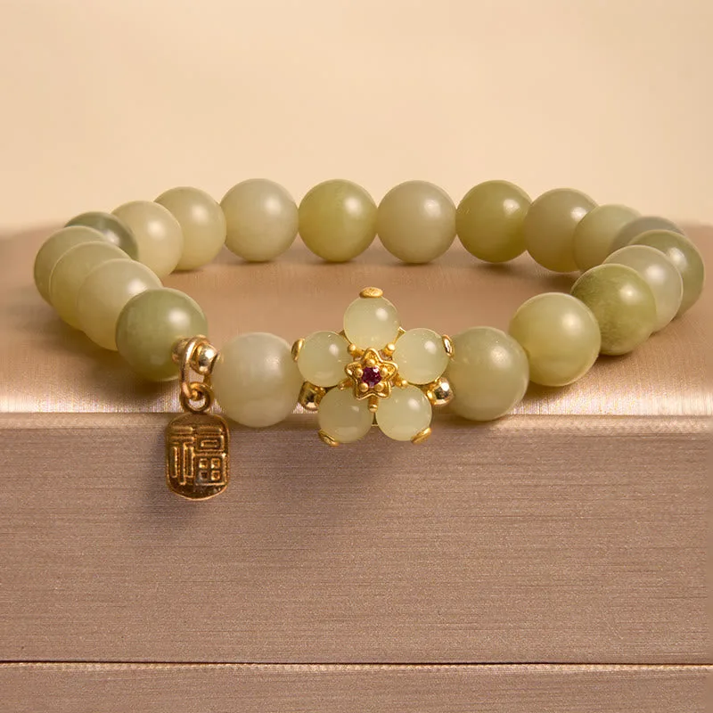 Mythstone Green Jade Flower Fu Character Charm Luck Bracelet