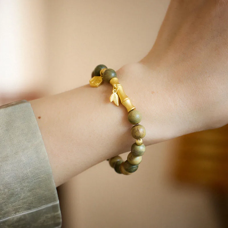 - Material: Green Sandalwood. Wood. Gold Plated Copper