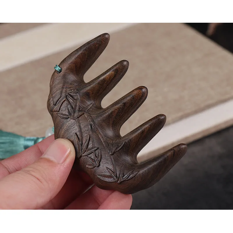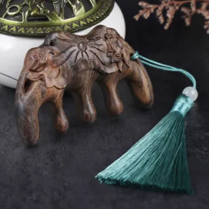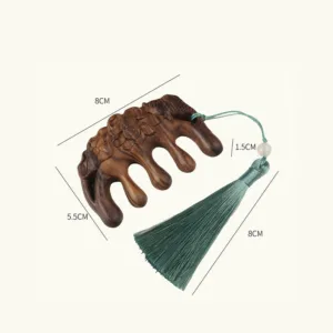 Discover serenity with the Mythstone Green Sandalwood Comb. exquisitely engraved with symbols of tranquility: plum blossoms. lotus flowers. and koi fish. Crafted from soothing sandalwood. this comb not only detangles but also infuses every stroke with calming energies. A perfect blend of beauty and spiritual resonance. it’s a treasure for both body and soul.