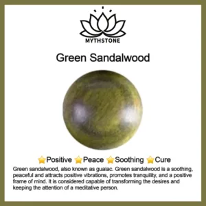 Green sandalwood. also known as guaiac. Green sandalwood is a soothing. peaceful and attracts positive vibrations. promotes tranquility. and a positive frame of mind. It is considered capable of transforming the desires and keeping the attention of a meditative person.