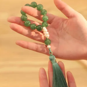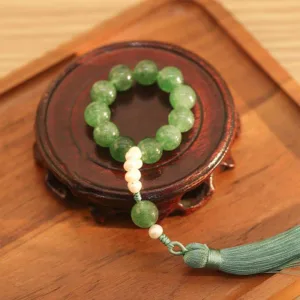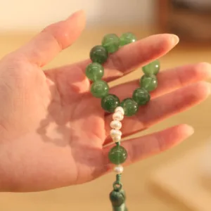 Indulge in the soothing energies of our Green Strawberry Quartz Pearl Wrist Mala. This exquisite piece combines the tranquility of Green Strawberry Quartz with the wisdom and optimism of pearls. Feel the calming embrace of the quartz while the pearls inspire love. sincerity. and loyalty. Elevate your style and well-being with this elegant accessory that resonates with healing and positivity.