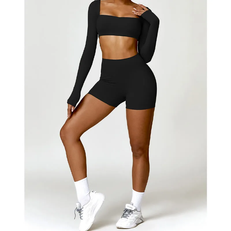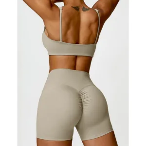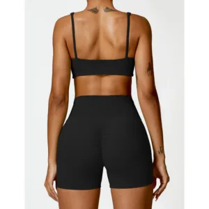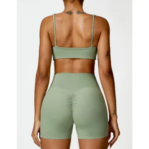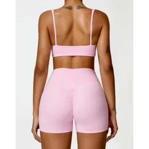 Gym Sports Yoga Backless Bra outfit features a crop tank top and shorts. ideal for gym and yoga sessions. Made from breathable fabric. this set ensures comfort and flexibility during workouts. The backless design provides a wide range of motion. while the crop tank offers support. Perfect for maintaining balance and focus. this outfit is a must-have for active women.