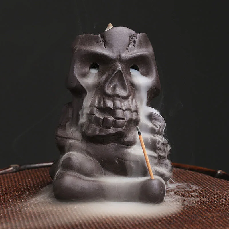 The Mythstone Halloween Skull Head Purple Clay Healing Incense Burner is a unique and artistic decoration piece perfect for those looking to add a touch of mystique and spirituality to their space. Crafted from purple clay. this incense burner features a skull head design. making it an ideal choice for Halloween enthusiasts and those seeking a distinctive home decor item.