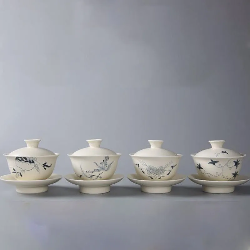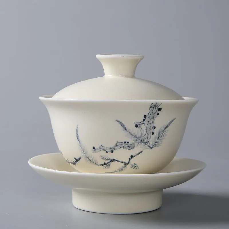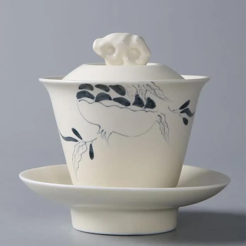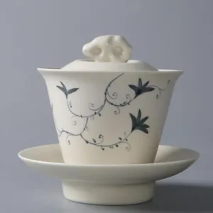 Be the first to review “Mythstone Hand Painted Pomegranate Hibiscus Pine Lotus Ceramic Gaiwan Sancai Teacup Kung Fu Tea Cup And Saucer With Lid”