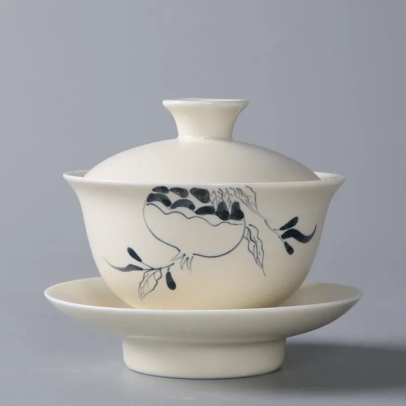 Hand Painted Pomegranate Hibiscus Pine Lotus Ceramic Gaiwan Sancai Teacup Kung Fu Tea Cup And Saucer With Lid