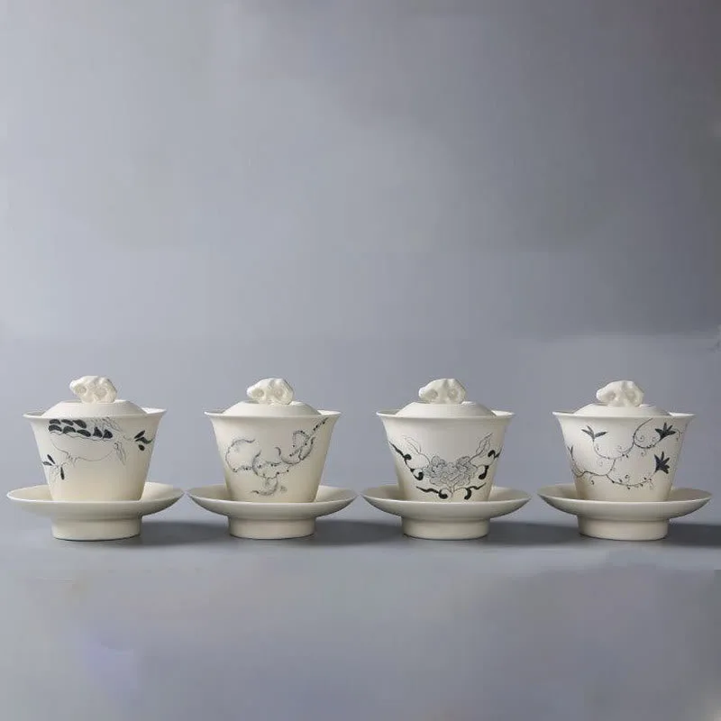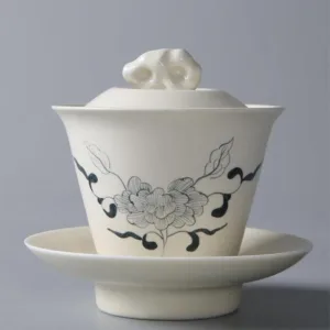 Mythstone Pomegranate Gaiwan Teacup is a celebration of life and nature. hand-painted with motifs of pomegranate. hibiscus. pine. and lotus. Each symbol enriches the tea ritual with its unique significance. from prosperity to beauty. longevity. and purity. This Gaiwan set encourages a moment of appreciation for life’s gifts. making every cup of tea a gesture of gratitude and celebration.