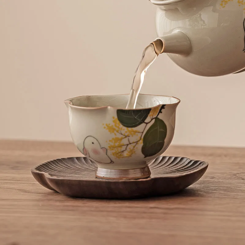 Mythstone Small Osmanthus Rabbit Ceramic Teacup Kung Fu Tea Cup 40ml