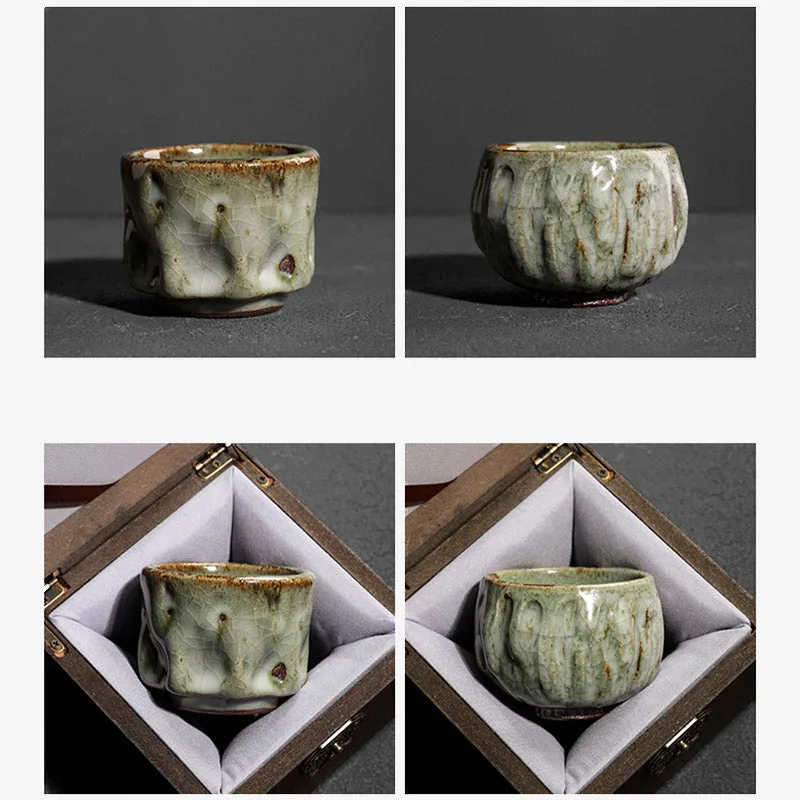 Mythstone Handcrafted Simple Cracked Ice Texture Chinese Jianzhan Ceramic Teacup Kung Fu Tea Cup