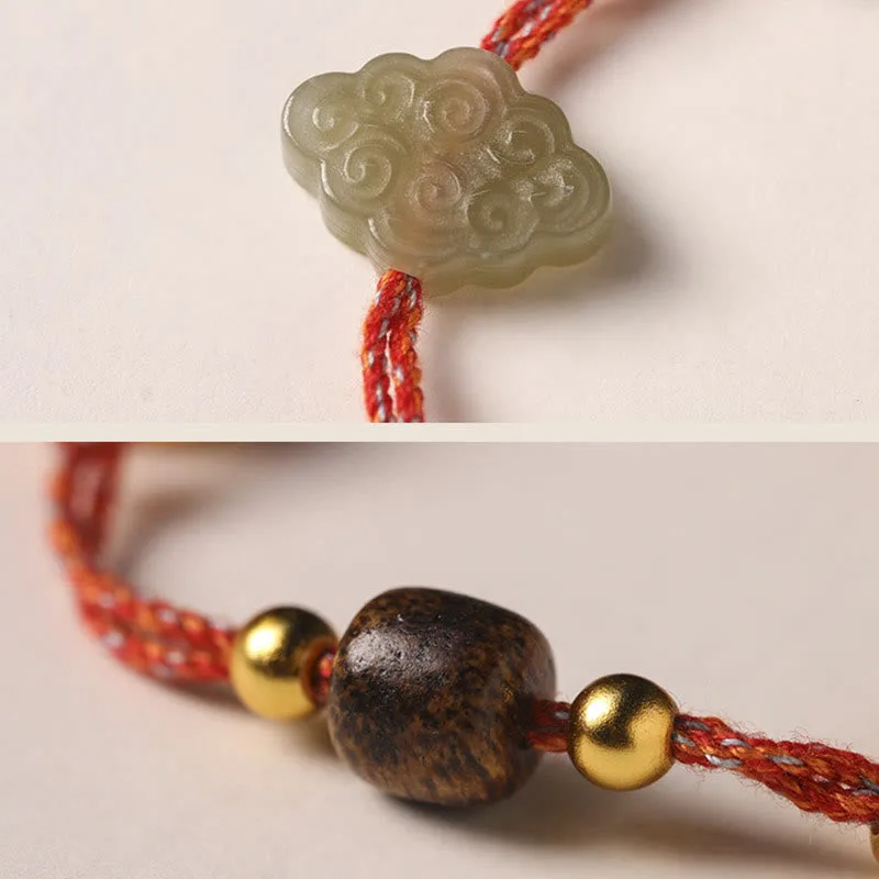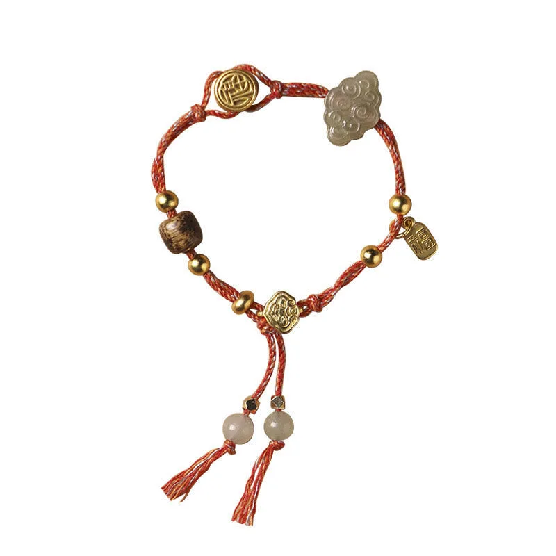 Mythstone Handmade Auspicious Clouds Hetian Jade Fu Character Luck Fortune Rope Bracelet