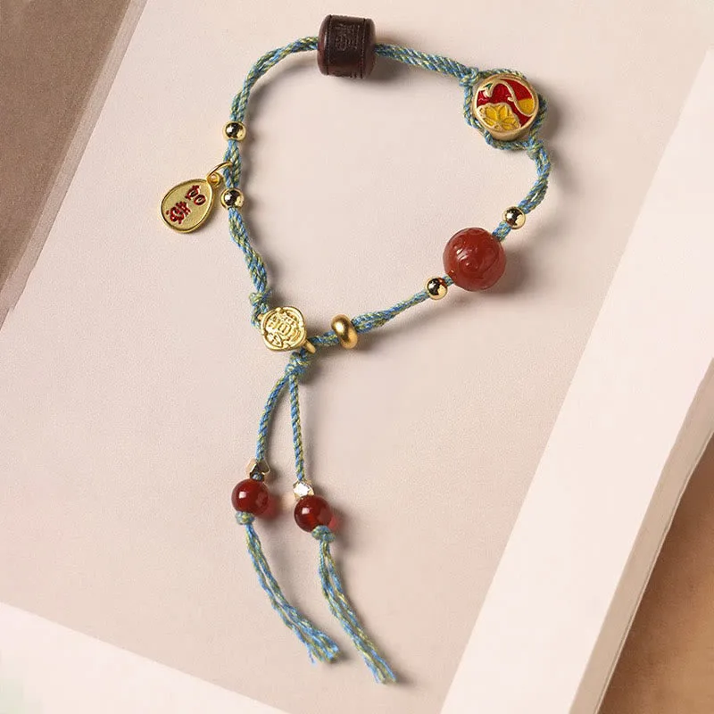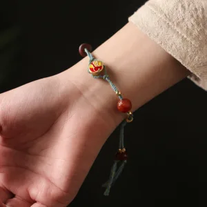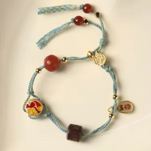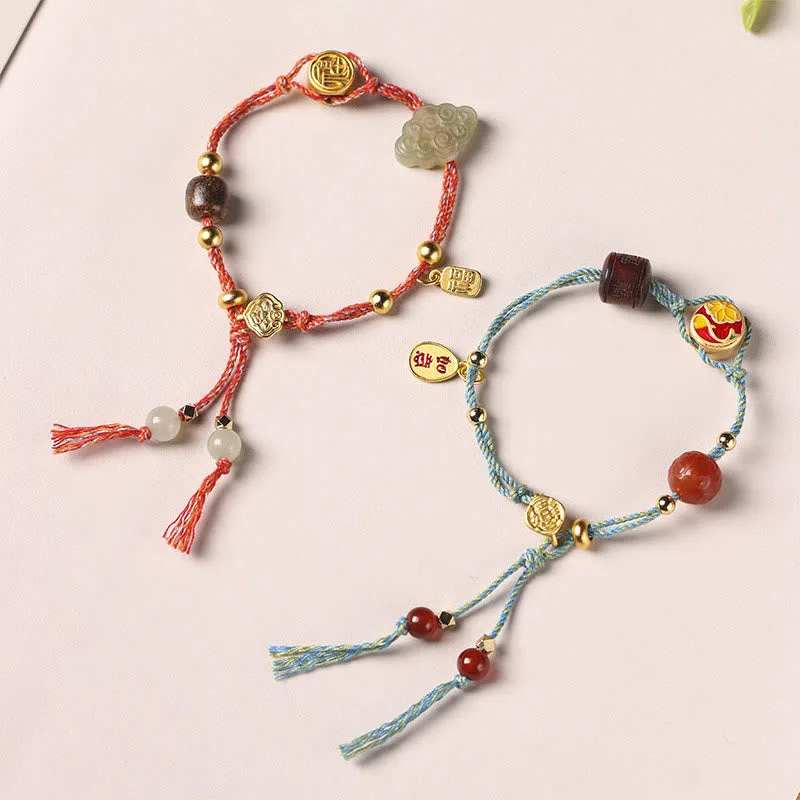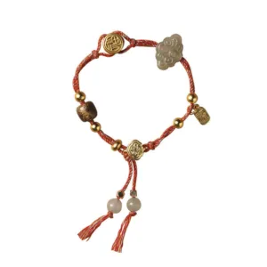 The Mythstone Handmade Auspicious Clouds Hetian Jade Fu Character Luck Fortune Rope Bracelet is a beautifully crafted accessory that brings luck and fortune to those who wear it. Ideal for individuals seeking positive energy and blessings in their lives. this bracelet is a symbol of auspiciousness and prosperity.