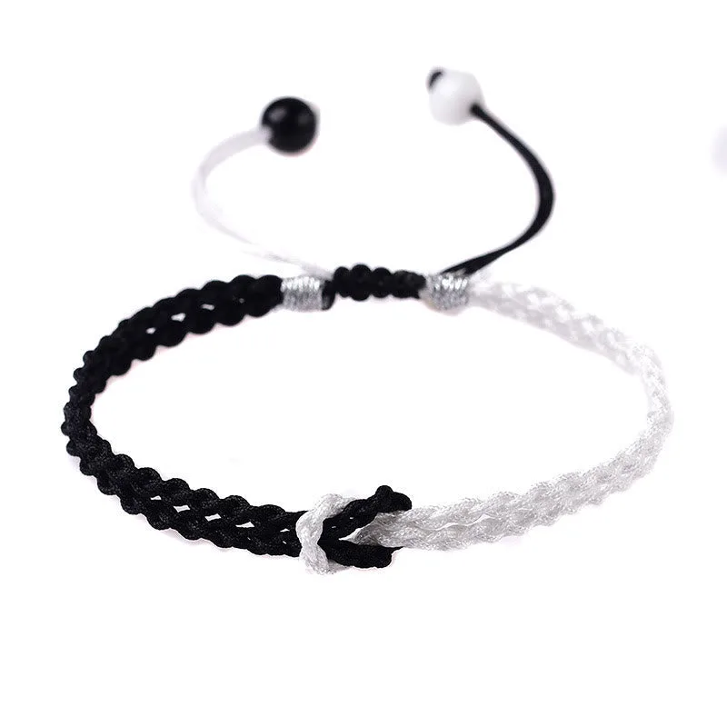 Mythstone Handmade Black White Rope Braided Healing Bracelet