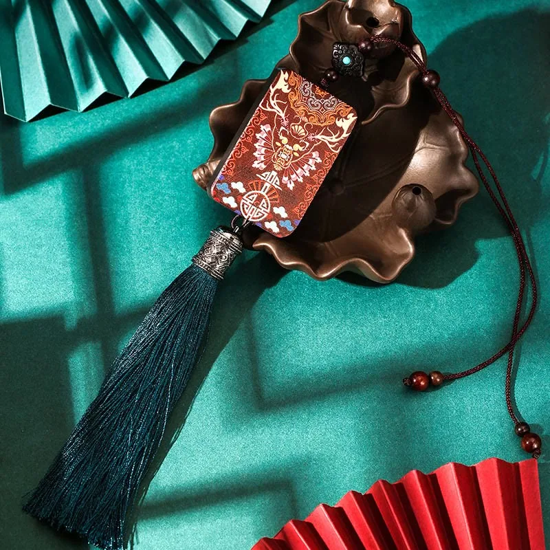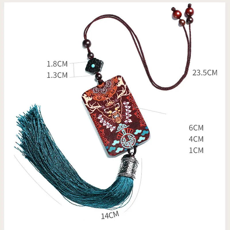 - Material: Ebony Wood. Sandalwood. Tassel. Alloy