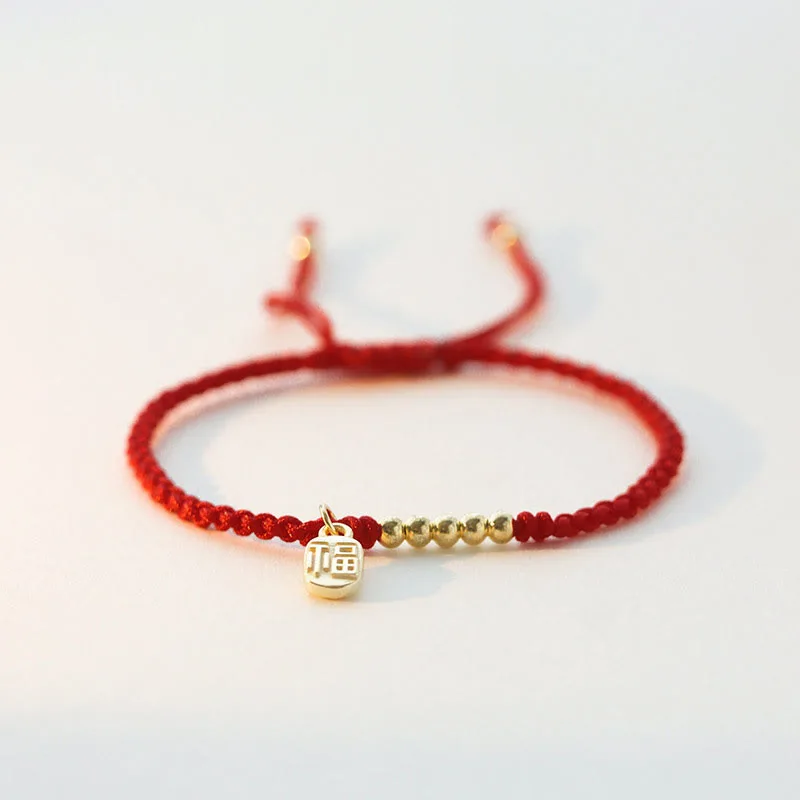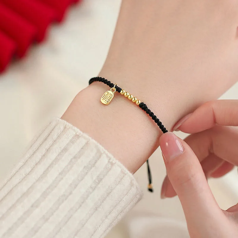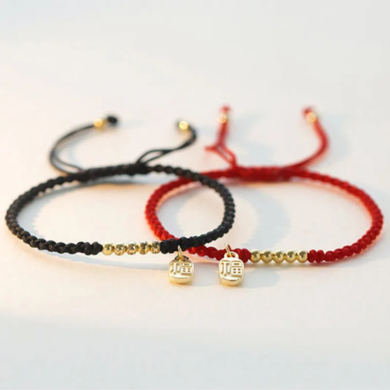 Mythstone Handmade Fu Character Charm Luck Fortune Rope Bracelet