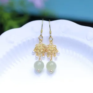 - Material: Hetian Jade. 14k gold-plated surface