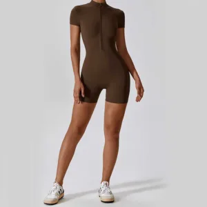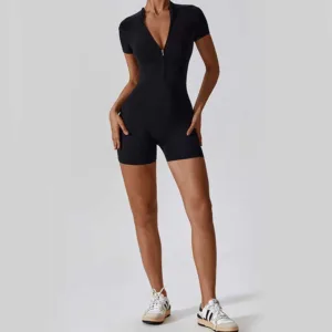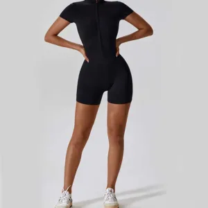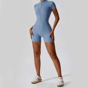 High Stretch Zipper jumpsuit combines functionality with comfort. designed specifically for sports and yoga enthusiasts. This short-sleeve bodysuit is crafted from flexible. breathable fabric that moves with you. ensuring maximum performance during any fitness routine. The convenient zipper design allows for easy wear. making it a perfect blend of practicality and style for your workout wardrobe.