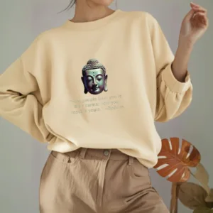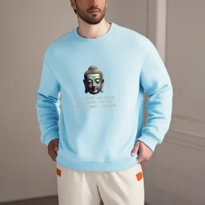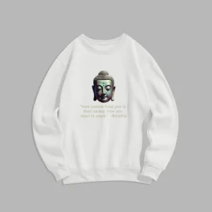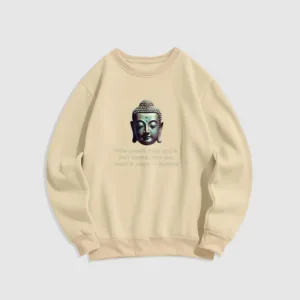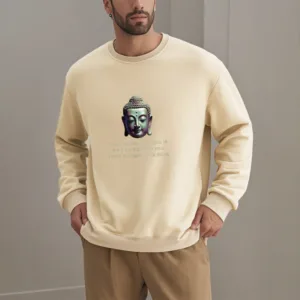 “Blending traditional Buddhist motifs with modern style. this sweatshirt aims to inspire inner peace and spiritual connection. By honoring the wisdom of Buddhism through accessible. contemporary design. we hope this piece brings joy and spiritual strength to all who wear it.”