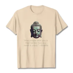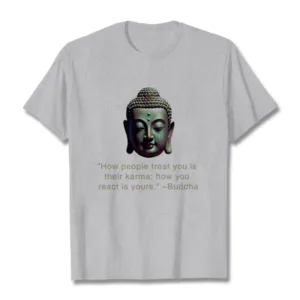 Karma Buddha Tee features a striking Buddha design. symbolizing wisdom and serenity. The phrase “How People Treat You Is Their Karma” reminds us to stay centered despite others’ actions. Made from soft. breathable fabric. this t-shirt offers comfort and a peaceful mindset throughout the day. Embrace tranquility and wisdom with this thought-provoking and meaningful piece.