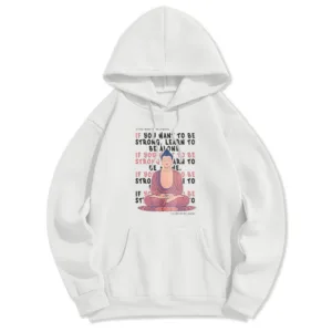 Be Strong Buddha Polyester Hoodie features a centered Buddha with lines of inspiring text arranged behind. symbolizing resilience and inner strength. Made from soft. fleece-lined polyester. this hoodie provides warmth and comfort. perfect for moments of reflection or meditation. The cozy fabric and powerful design promote a sense of calm and determination. serving as a reminder to embrace strength and courage through life’s challenges.