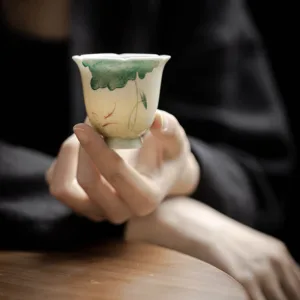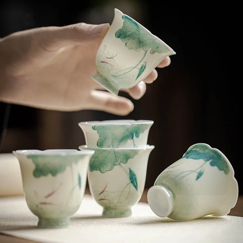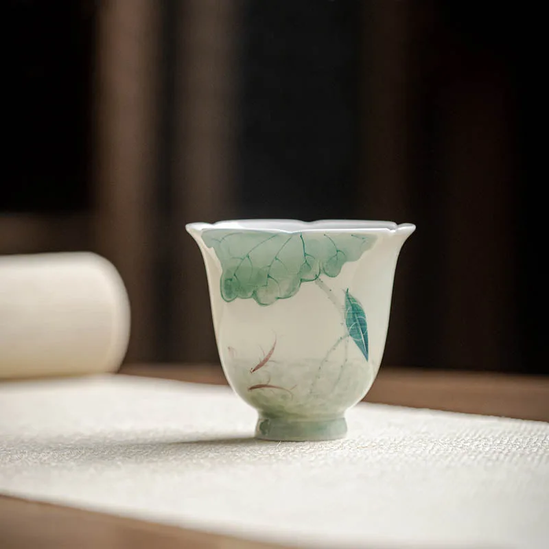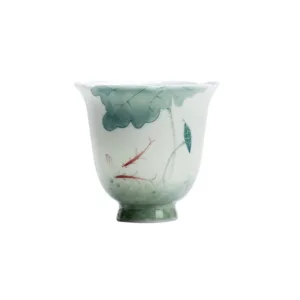 Mythstone Koi Fish Lotus Leaf Pattern Ceramic Teacup Kung Fu Tea Cup 65ml
