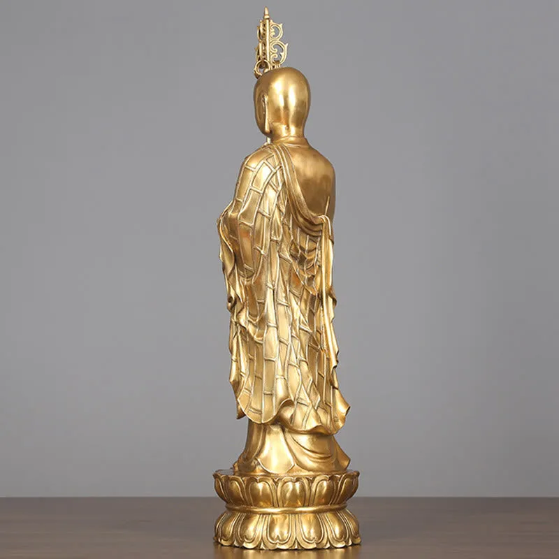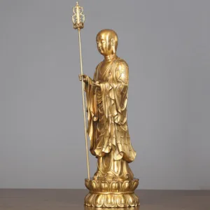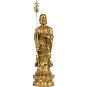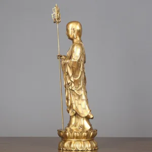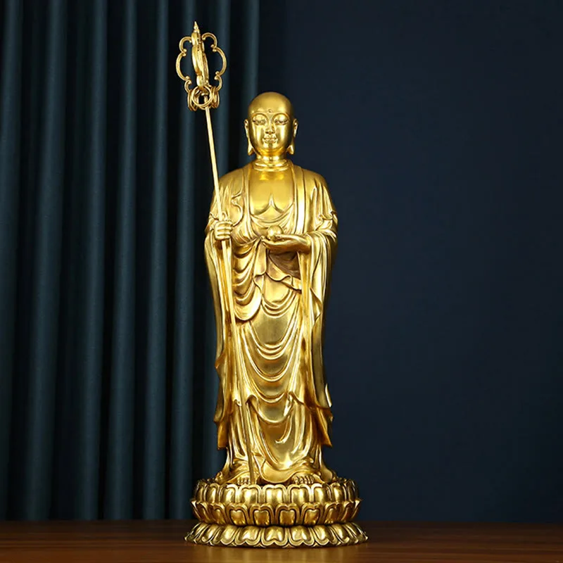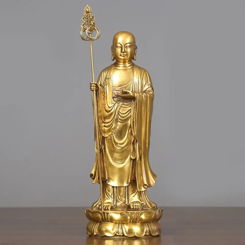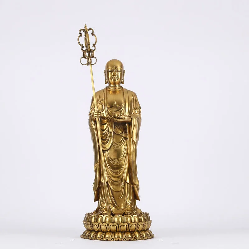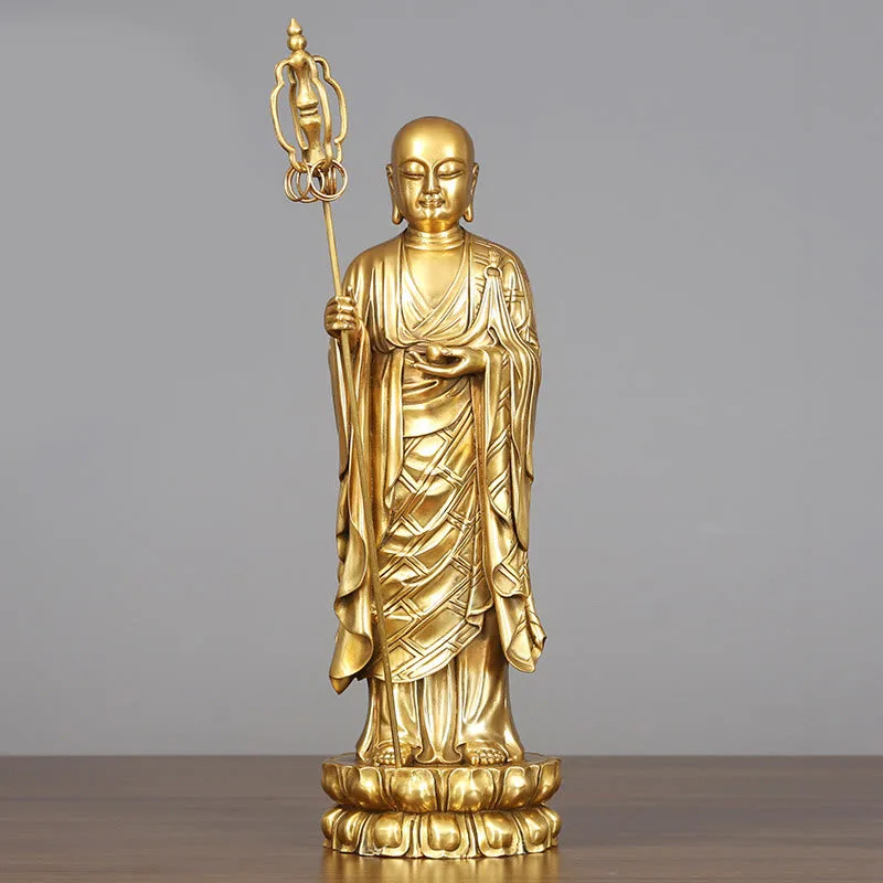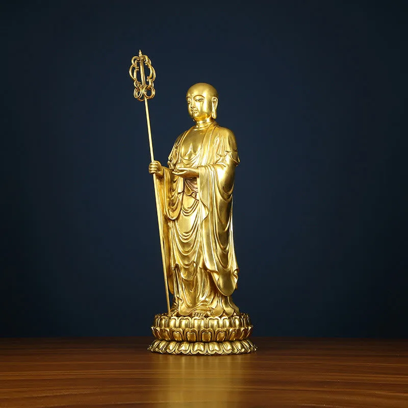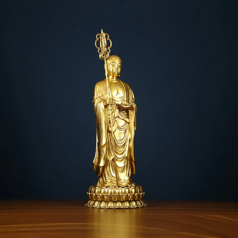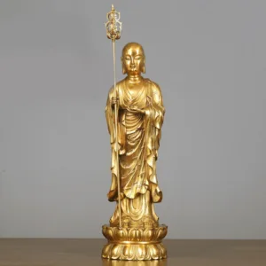 Ksitigarbha Bodhisattva Copper statue is a symbol of compassion and protection. Crafted from copper. this figurine depicts Ksitigarbha in a serene pose. embodying the spirit of benevolence and guidance. Its detailed design highlights the Bodhisattva’s commitment to helping those in need and brings a sense of calm and empathy to your home. Ideal for meditation spaces or as a heartfelt offering.