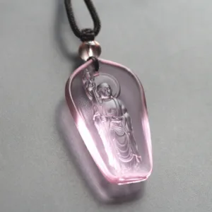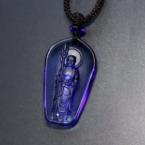 This Ksitigarbha Buddha Amulet Pendant. crafted from Liuli crystal. offers a serene addition to any spiritual practice. Ideal for those seeking peace and protection. it’s a meaningful accessory for meditation and mindfulness practitioners. enhancing spiritual connection and tranquility.