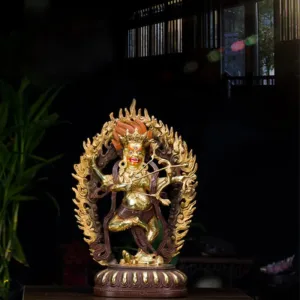 Infuse your living space with tranquility through our Kurukulla Buddha Copper Statue. Crafted with meticulous attention. this statue encapsulates the essence of compassion. Whether displayed at home or in your office. it brings an aura of serenity and mindfulness. Its copper construction not only signifies aesthetic beauty but also embodies the symbol of compassion. making it a meaningful addition to your decor.