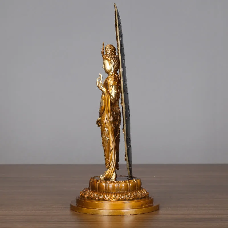 - Size: Avalokitesvara 18*41.5cm(Diameter*Height). Background Aura Height 35.5cm. Statue Height 27.5cm