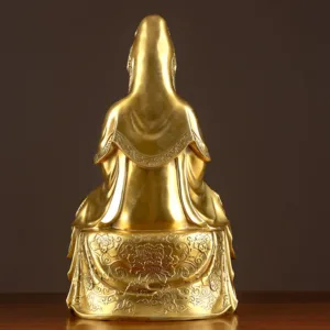 Kwan Yin Wealth statue blends spiritual grace with the allure of prosperity. Made from brass and copper. this statue depicts Kwan Yin Avalokitesvara. embodying compassion and wealth. Perfect for home or desk decoration. it serves as a powerful symbol of kindness and abundance. creating a harmonious atmosphere that attracts positive energy and fortune into your living or workspace.