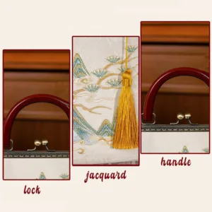 - Classic Design Inspiration: this vintage handbag draws its inspiration from classic Chinese aesthetics. featuring motifs of landscape and embroidery. These motifs are traditional Chinese symbols representing beauty. harmony. propitious. and tranquility.