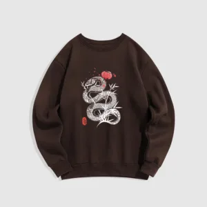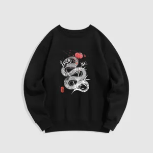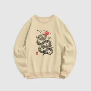 - DESIGN INSPIRATION: The sweatshirt featuring designs of asnake. bamboo. and lanternssymbolizes transformation. resilience. and guidance. The snake represents renewal and the shedding of old skin. while bamboo signifies strength and flexibility. and the lanterns evoke illumination and hope. together encouraging wearers to embrace change and navigate life’s challenges with wisdom and clarity.