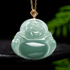Experience the power of prosperity and happiness with our Laughing Buddha Natural Jade Necklace Pendant. Crafted with exquisite jade and adorned with an 18K gold Laughing Buddha. this necklace radiates luck. abundance. and joy. Embrace positive energy and attract success and wealth into your life with this meaningful and stunning piece.