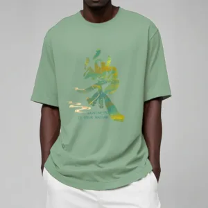 Le Tee T-shirt features a striking green and gold “Le” symbol. representing happiness. Crafted from high-quality. breathable cotton. the shirt promotes comfort and a sense of tranquility. Its minimalist design serves as a reminder of joy’s simplicity and your true nature. The combination of colors and message inspires positivity and mindfulness in every moment of your day.