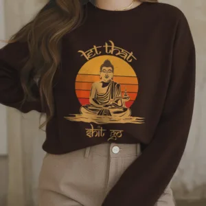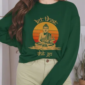 Let That Shit Go Polyester Sweatshirt features a striking Buddha design at the center. accompanied by the phrase ??Let That Shit Go??displayed in artistic lettering. Crafted from high-quality polyester with a cozy fleece lining. this sweatshirt offers warmth and comfort while promoting a mindful approach to life. It serves as a reminder to release negativity. making it a perfect choice for meditation and self-reflection.