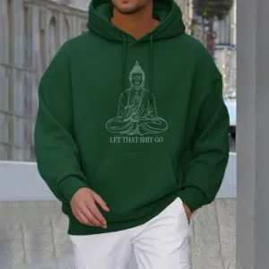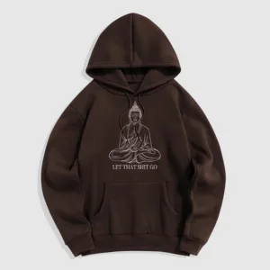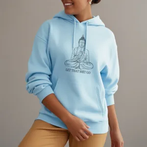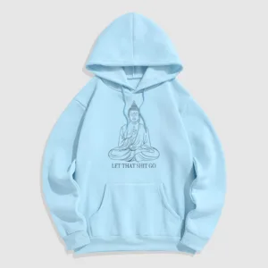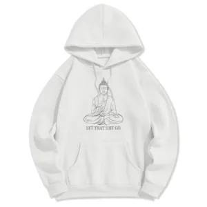 Let That Shit Go Polyester Hoodie features a serene Buddha image at the center. accompanied by the powerful message beneath. Crafted from soft polyester fleece. this hoodie offers both warmth and comfort. The design encourages mindfulness. promoting inner peace and letting go of negativity. Ideal for those who seek tranquility. this hoodie serves as a reminder to release stress and embrace positivity.