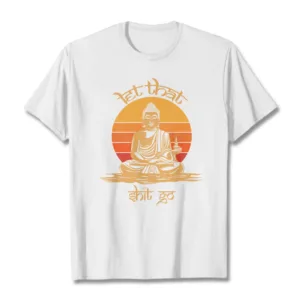 “Our design concept for this T-shirt blends traditional Buddhist elements with contemporary trends. aiming to inspire happiness and spiritual strength in those who wear it. Our goal is to create a T-shirt that not only honors Buddhist philosophy but also serves as a wearable piece of art that brings joy and a sense of connection to our community.”