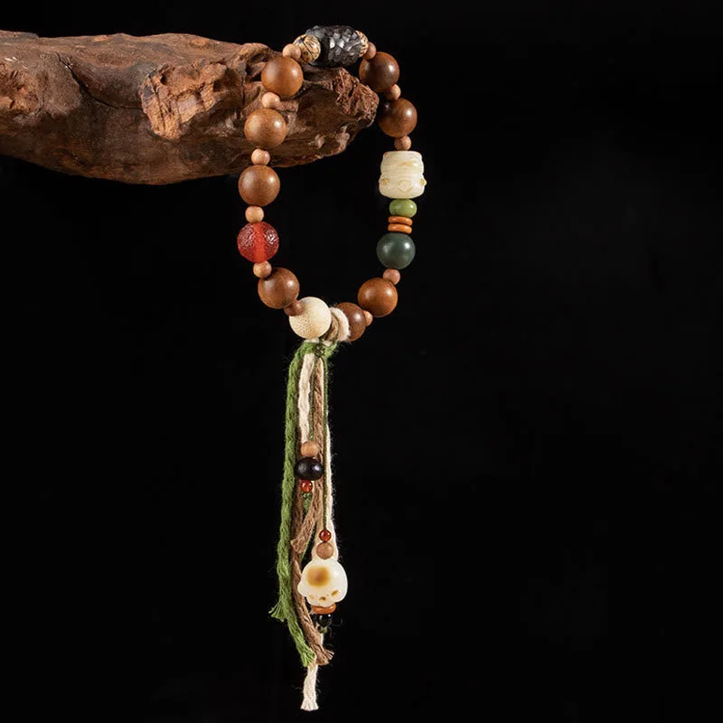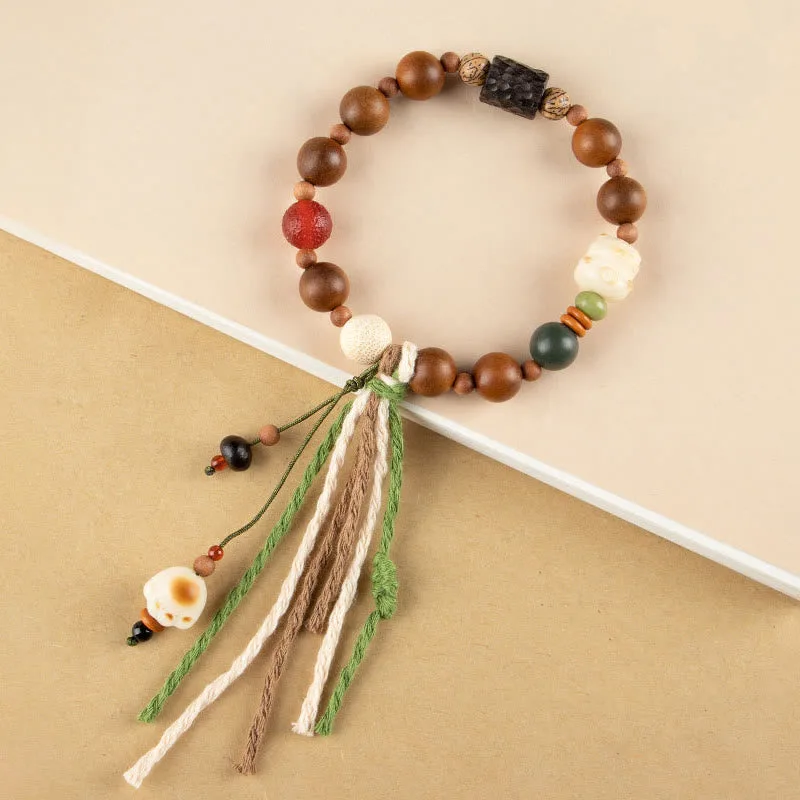 Mythstone Lightning Strike Wood Bodhi Seed Cat Paw Claw Auspiciousness Protection Tassel Bracelet