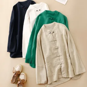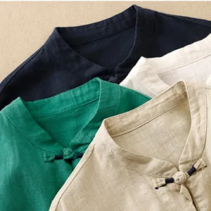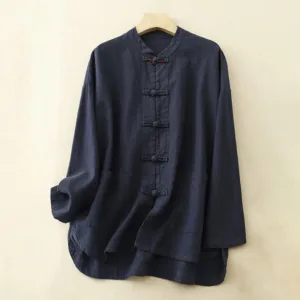 Chinese Knot Button Cotton Shirts feature traditional knot buttons. adding a touch of cultural heritage and elegance. Crafted from a soft cotton-linen blend. this shirt offers breathability and comfort. perfect for relaxed moments. The knot buttons symbolize unity and balance. making it ideal for those seeking mindfulness and tranquility in daily life. A harmonious garment for appreciating simplicity and cultural richness.
