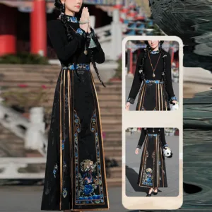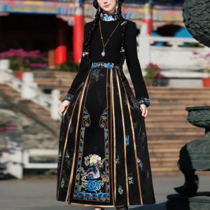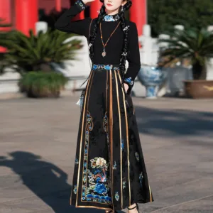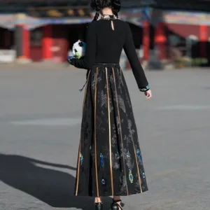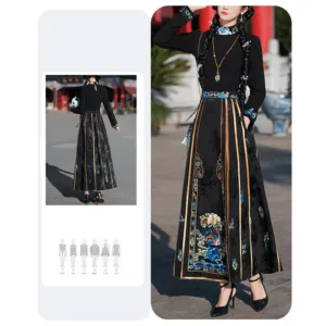 The horse face skirt is a traditional Chinese skirt characterized by its distinct pleated design. It is occasionally referred to in a more generic sense as an apron. This type of skirt is a key component of Hanfu. the traditional dress of Han Chinese women. serving as a lower garment. It is celebrated as one of the most emblematic styles of ancient Chinese skirts.
