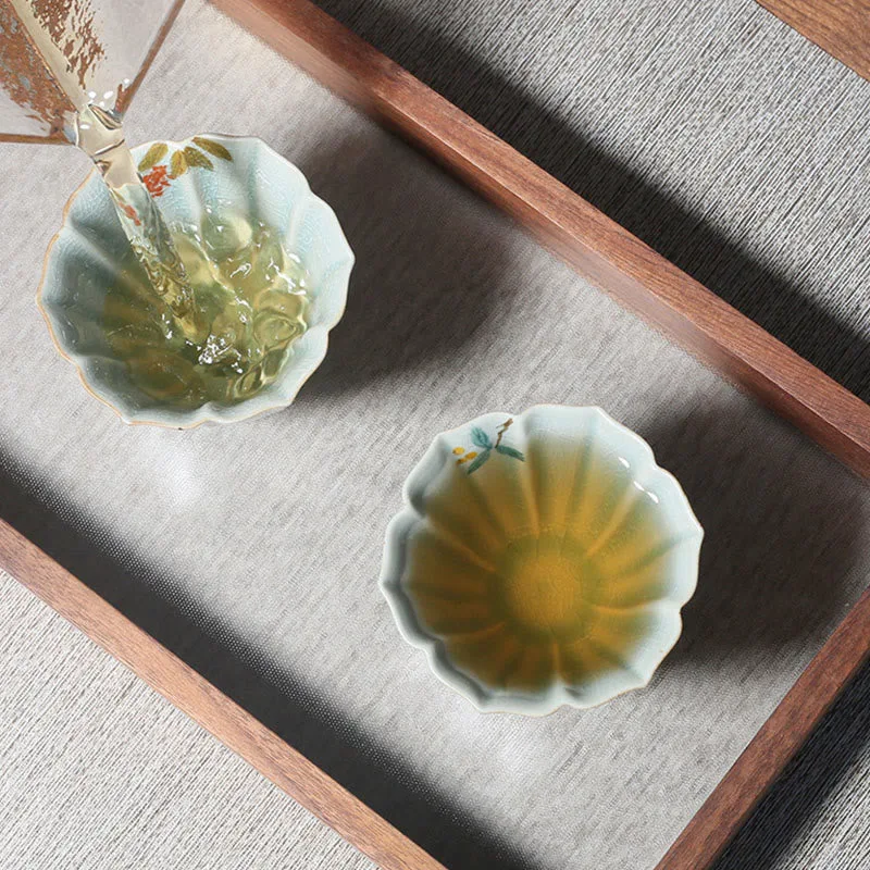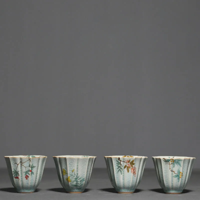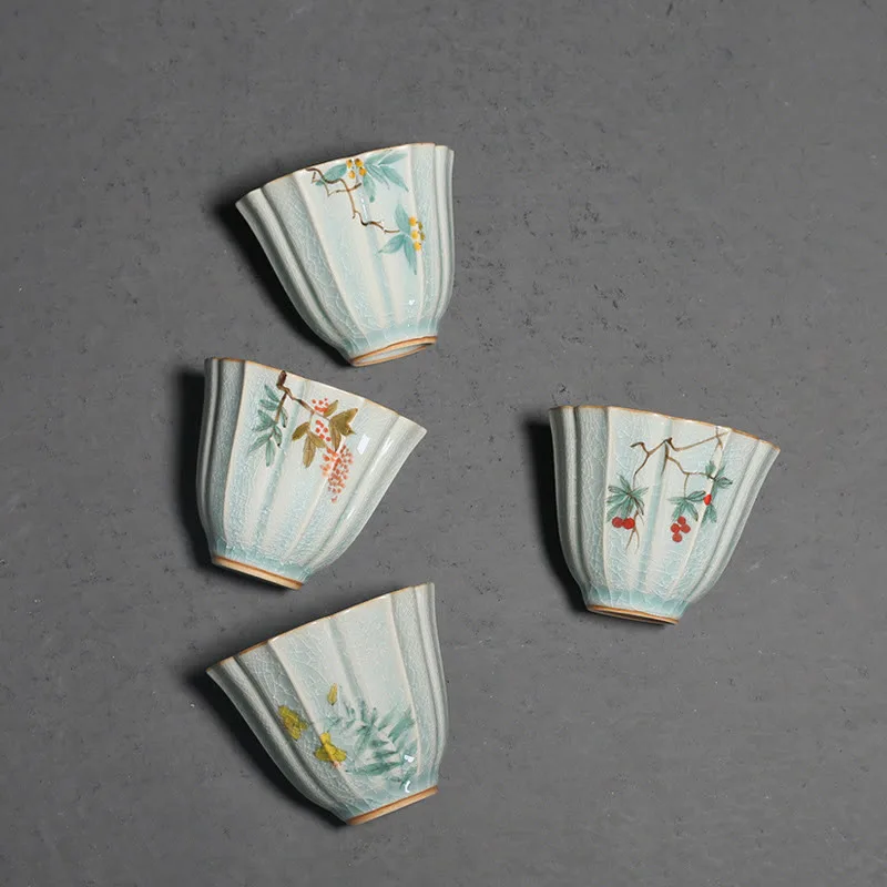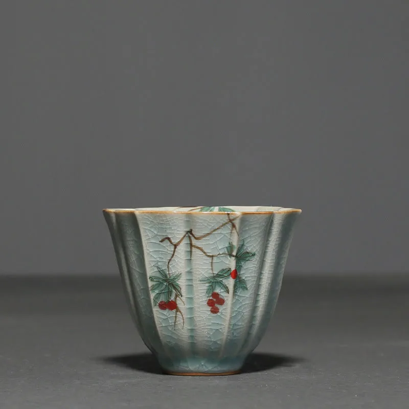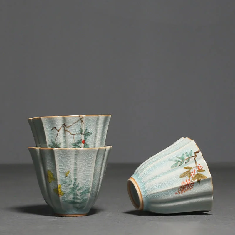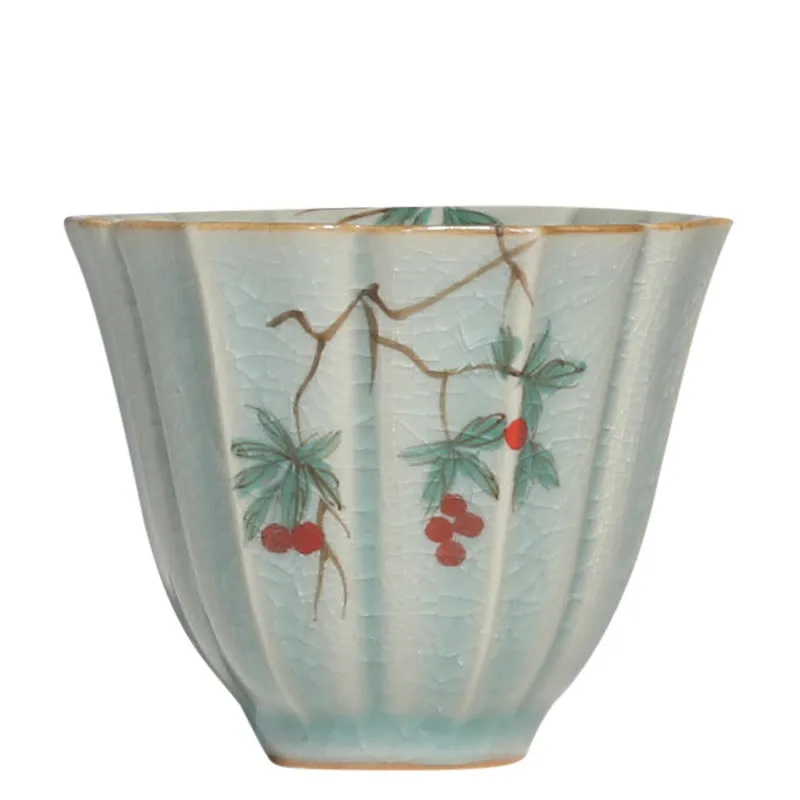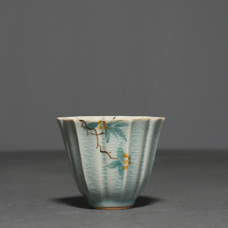 Loquat Dogwood Hawthorn Morning Glory Ceramic Teacup Kung Fu Tea Cup