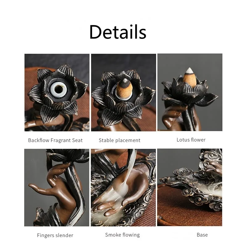 Application Occasion: The cones holder can be widely used in the living room. bedroom. study. office. meditation room. yoga room. hotel. etc.creating a pleasant atmosphere.Also works as a decoration even without the incense.