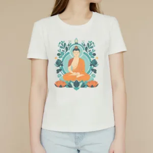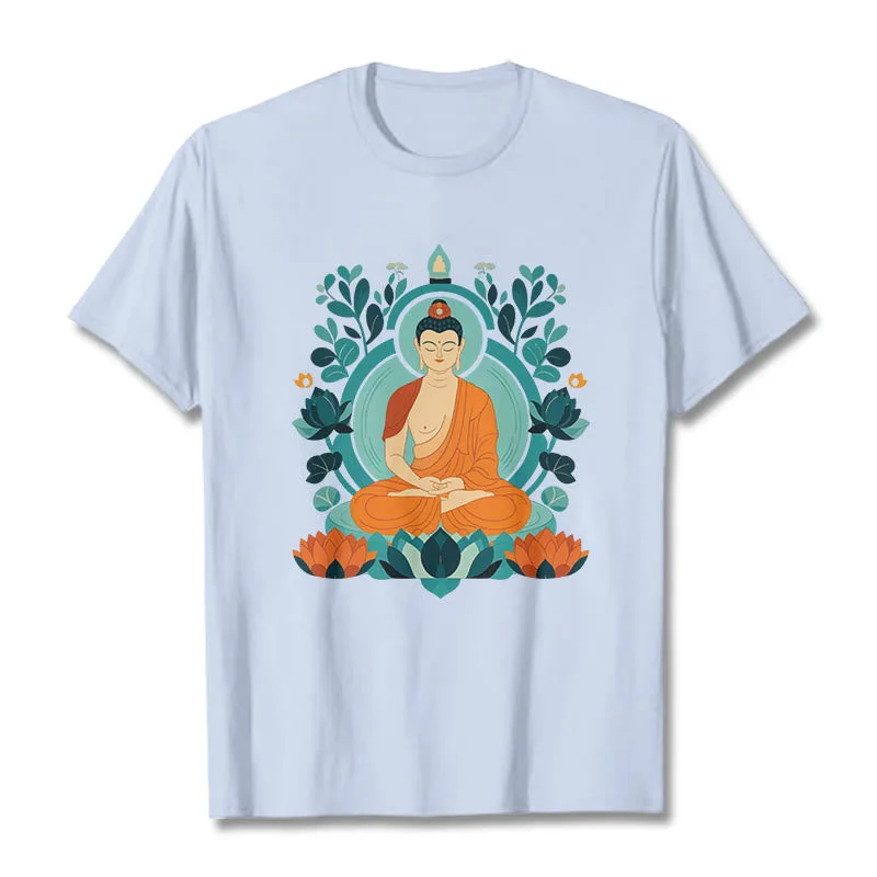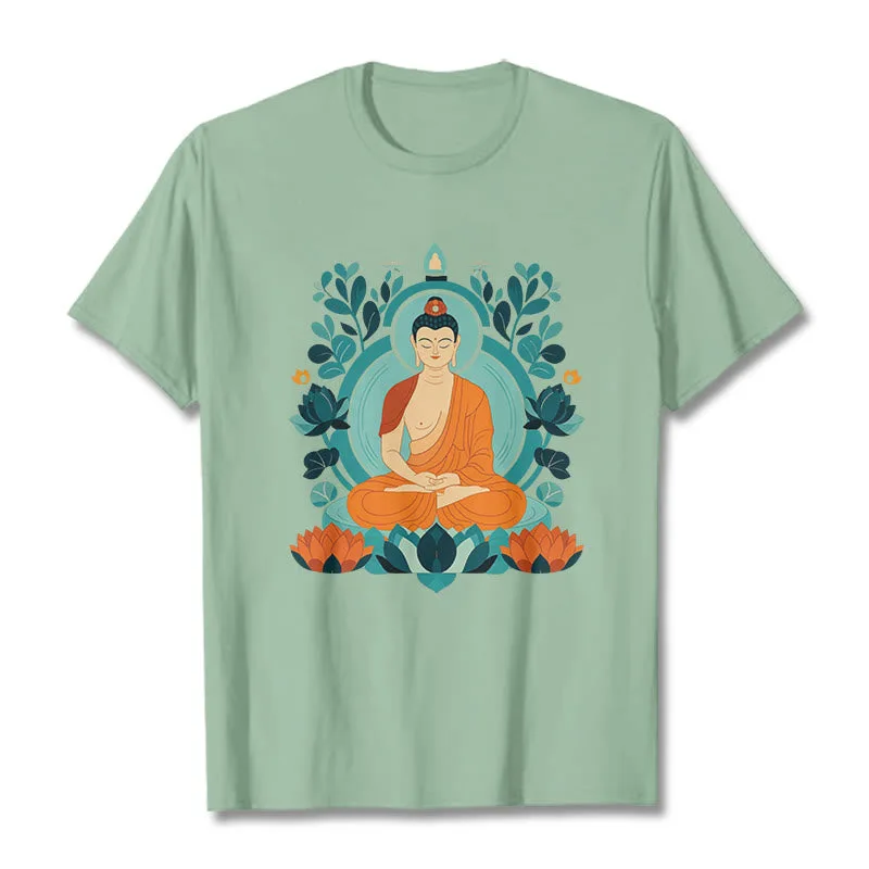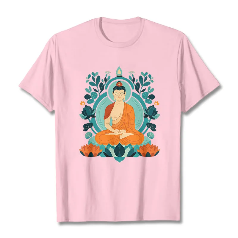 Lotus Buddha Meditation T-shirt combines a serene Buddha design with the symbolic lotus flower. Crafted from soft. breathable fabric. this T-shirt offers comfort and a relaxed fit. The intricate design embodies tranquility and mindfulness. making it an ideal choice for those seeking to enhance their meditation practice and promote a peaceful. centered mindset through their attire.
