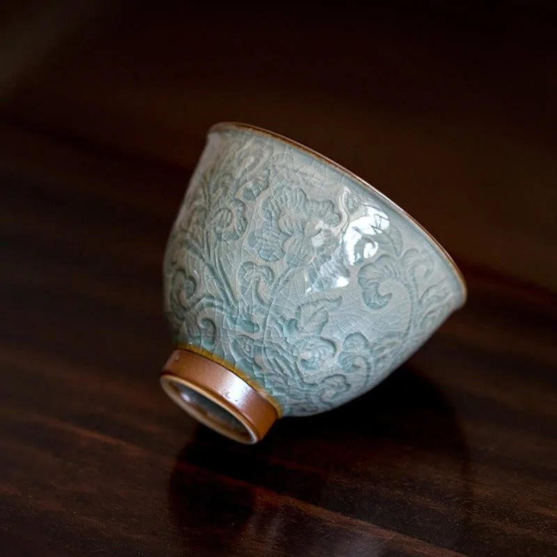Lotus Carved Ceramic Teacup Kung Fu Tea Cup