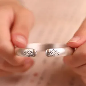 This exquisite Lotus Flower Heart Sutra White Copper Healing Luck Bracelet from Mythstone is crafted from high-quality white copper. renowned for its healing properties. The intricate lotus flower design symbolizes purity and enlightenment. while the Heart Sutra engraved on the bracelet brings peace and harmony to its wearer. A must-have accessory for those seeking serenity and good fortune.