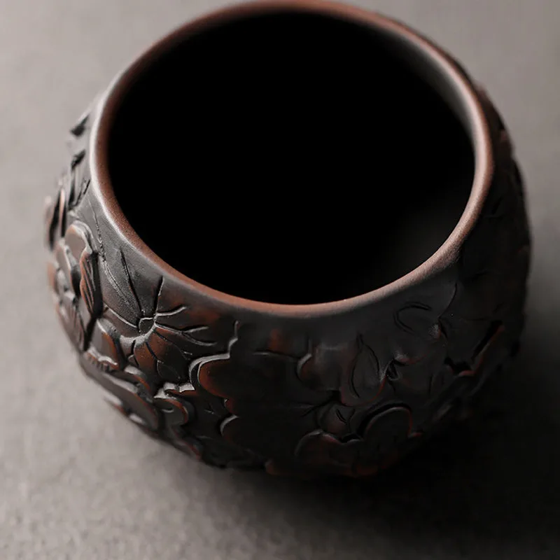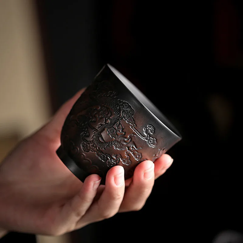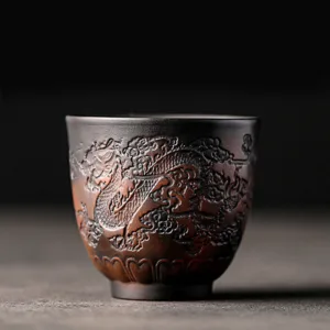 Mythstone Lotus Leaf Flower Landscape Dragon Bamboo Ceramic Teacup Kung Fu Tea Cup Bowl