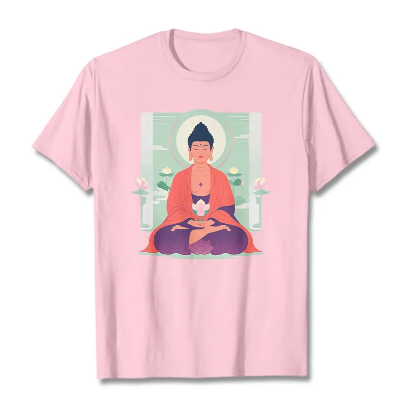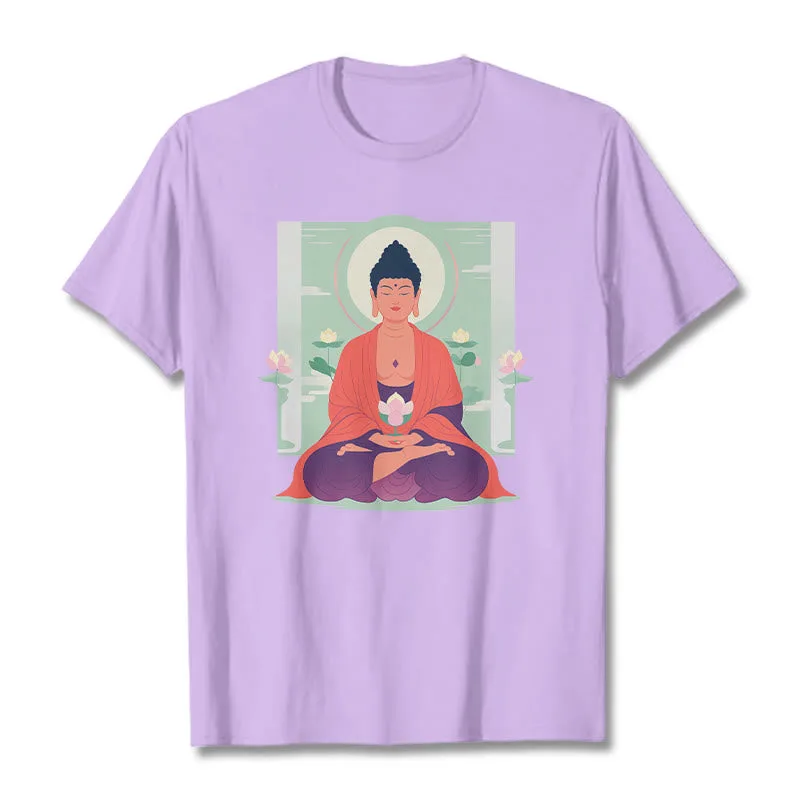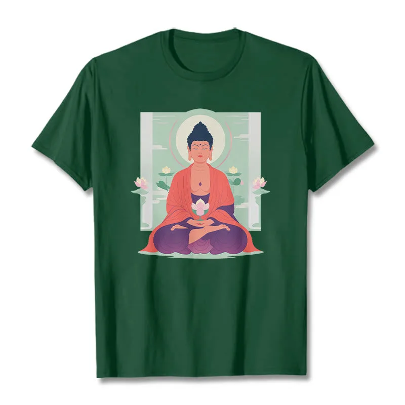 Lotus Meditation Buddha Tee features a calming Buddha design with a lotus motif. symbolizing purity and enlightenment. Made from soft. breathable fabric. this comfortable t-shirt is perfect for meditation or casual wear. The intricate print and relaxed fit ensure both style and comfort. Embrace the serene presence of Buddha and the lotus with this thoughtfully designed tee.